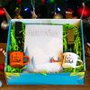Коледна картичка изработена от рециклирана хартия с авторски дизайн, към нея има прикрепена формичка със семенца.