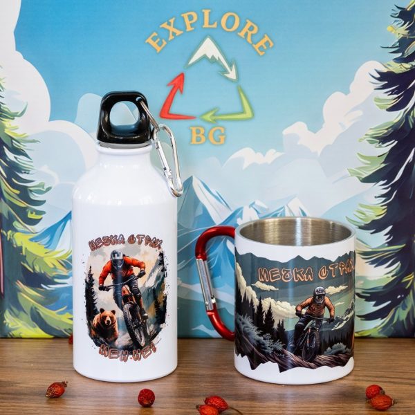 Метална бутилка за многократна употреба с вместимост от 400мл и карабинер на капачката.